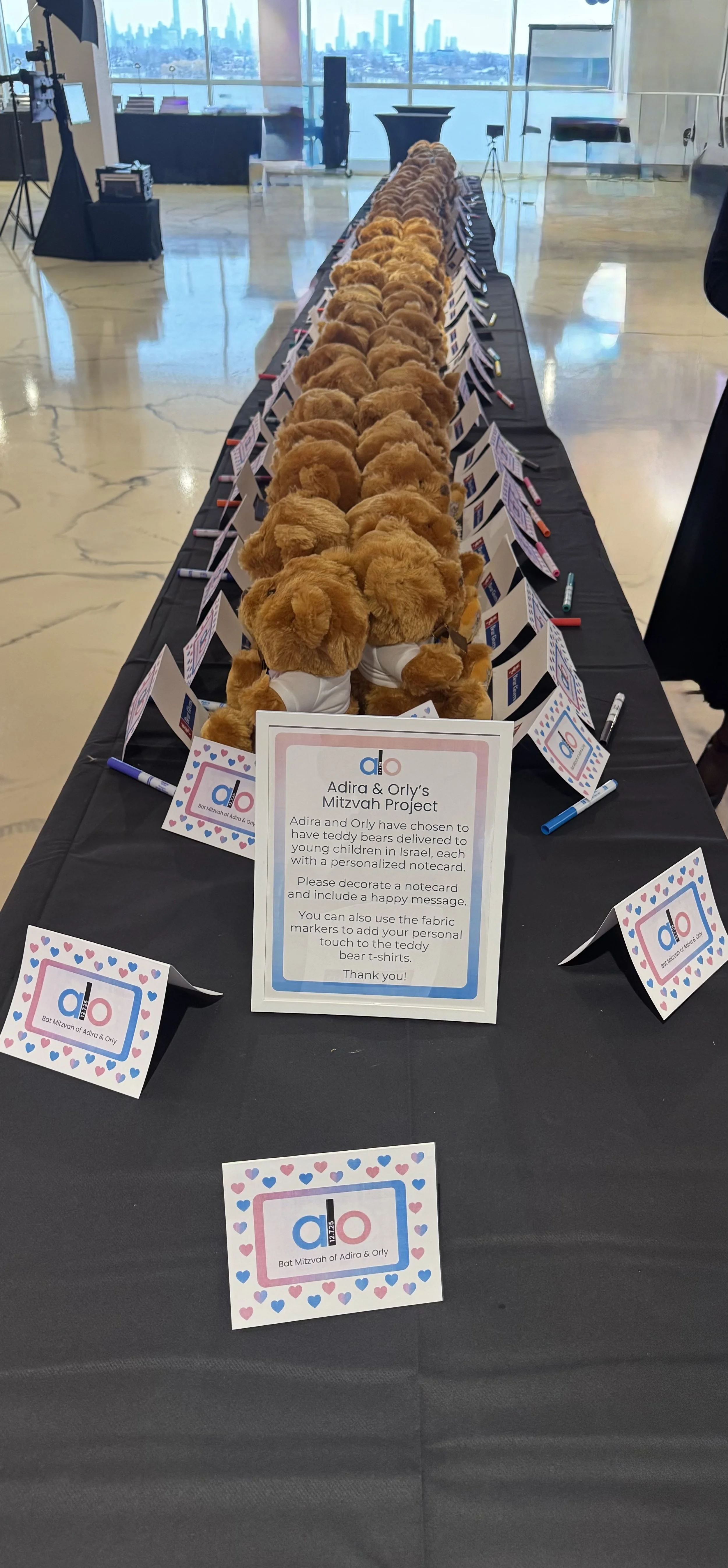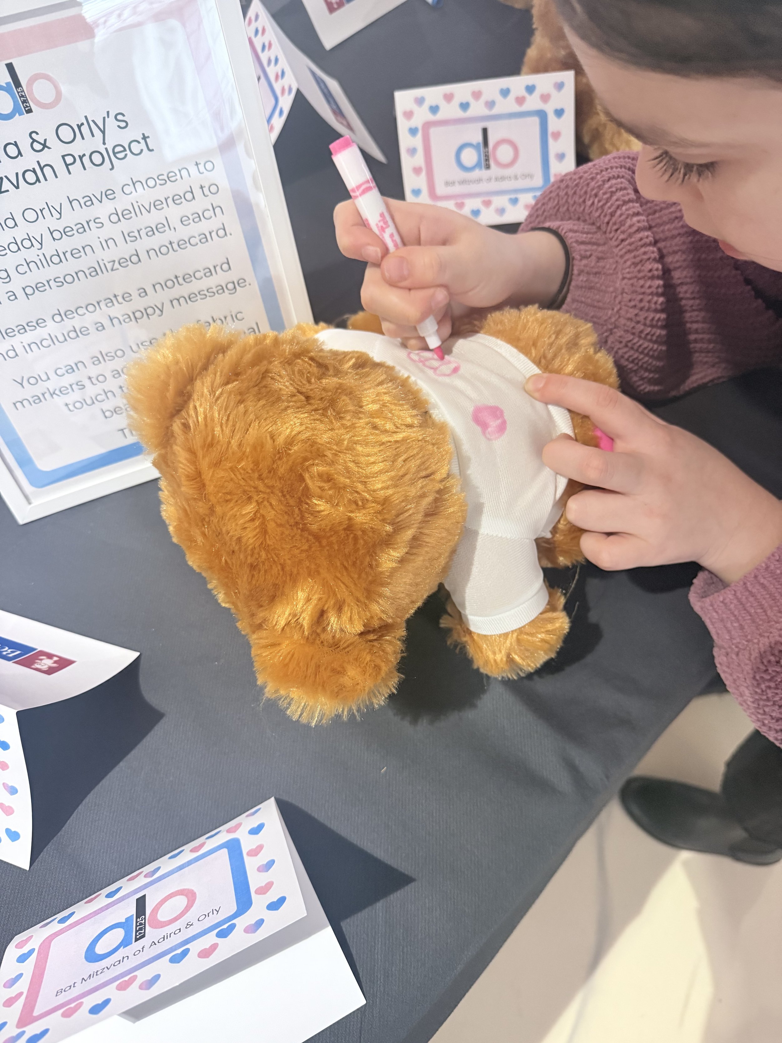 We were honored to be part of Adira and Orly’s Bat Mitzvah celebration by supporting their meaningful Mitzvah Project. Diane and Heather from Bear Givers spent the day at the event, where Adira and Orly invited their guests to write heartfelt notes and decorate teddy bear T-shirts. These special bears will be hand-delivered to young children in Israel this spring when Adira and Orly travel with their family for Passover.