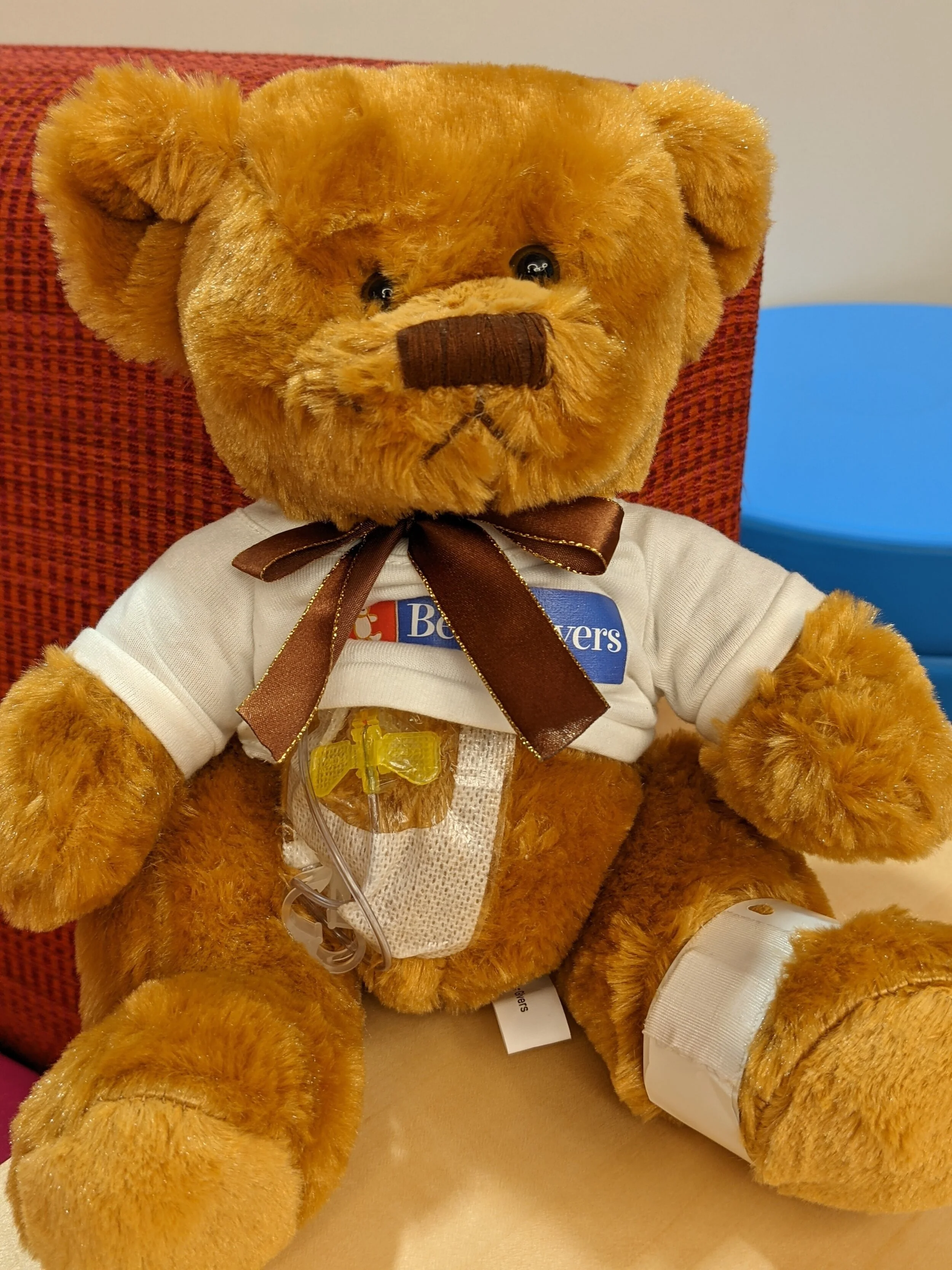 We love seeing our teddy bears help their new friends in hospitals all around the world! The teddy bear you see here had its "port accessed" to show a 2 year old patient that there was was nothing to be afraid of! Many of our hospital teddy bear donations are used to show pediatric patients that their operations and procedures don’t have to be so scary, which makes them more comfortable. Nurses and doctors can show little ones exactly what they can expect by showing them on their furry friends first. We hope everyone at Kaiser Capitol Hill is happy with their new teddy bear friends, and that they are truly spreading joy and comfort to everyone!