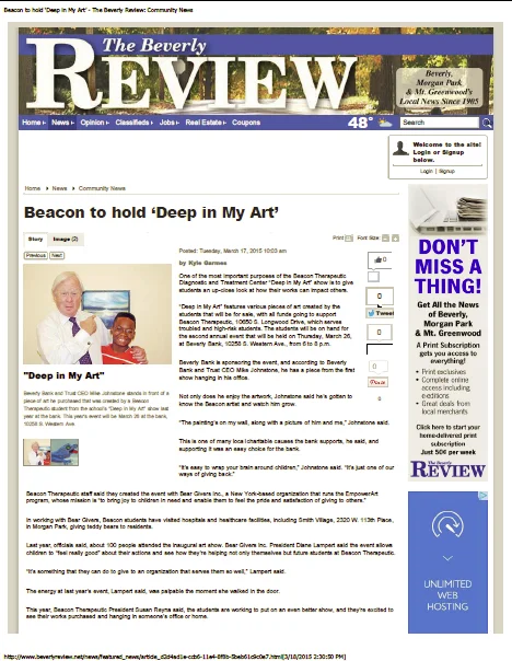One of the most important purposes of the Beacon Therapeutic Diagnostic and Treatment Center “Deep in My Art” show is to give students an up-close look at how their works can impact others.